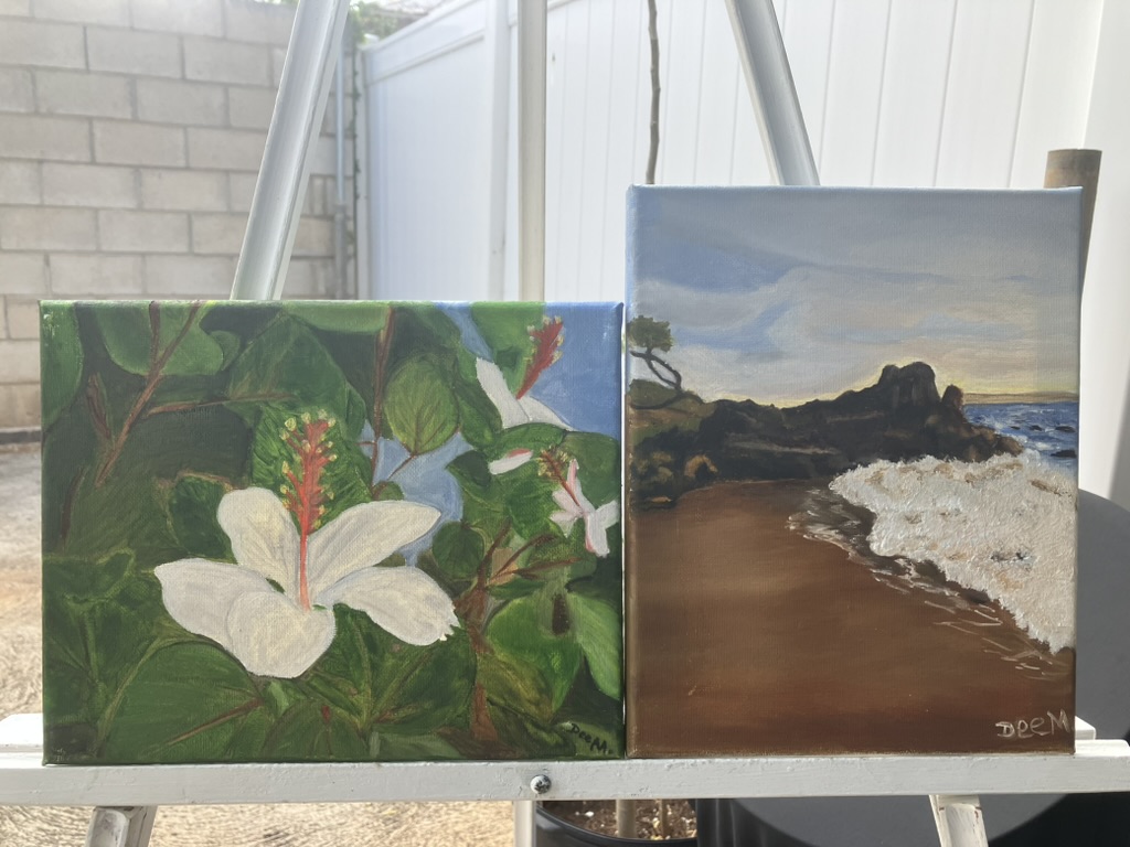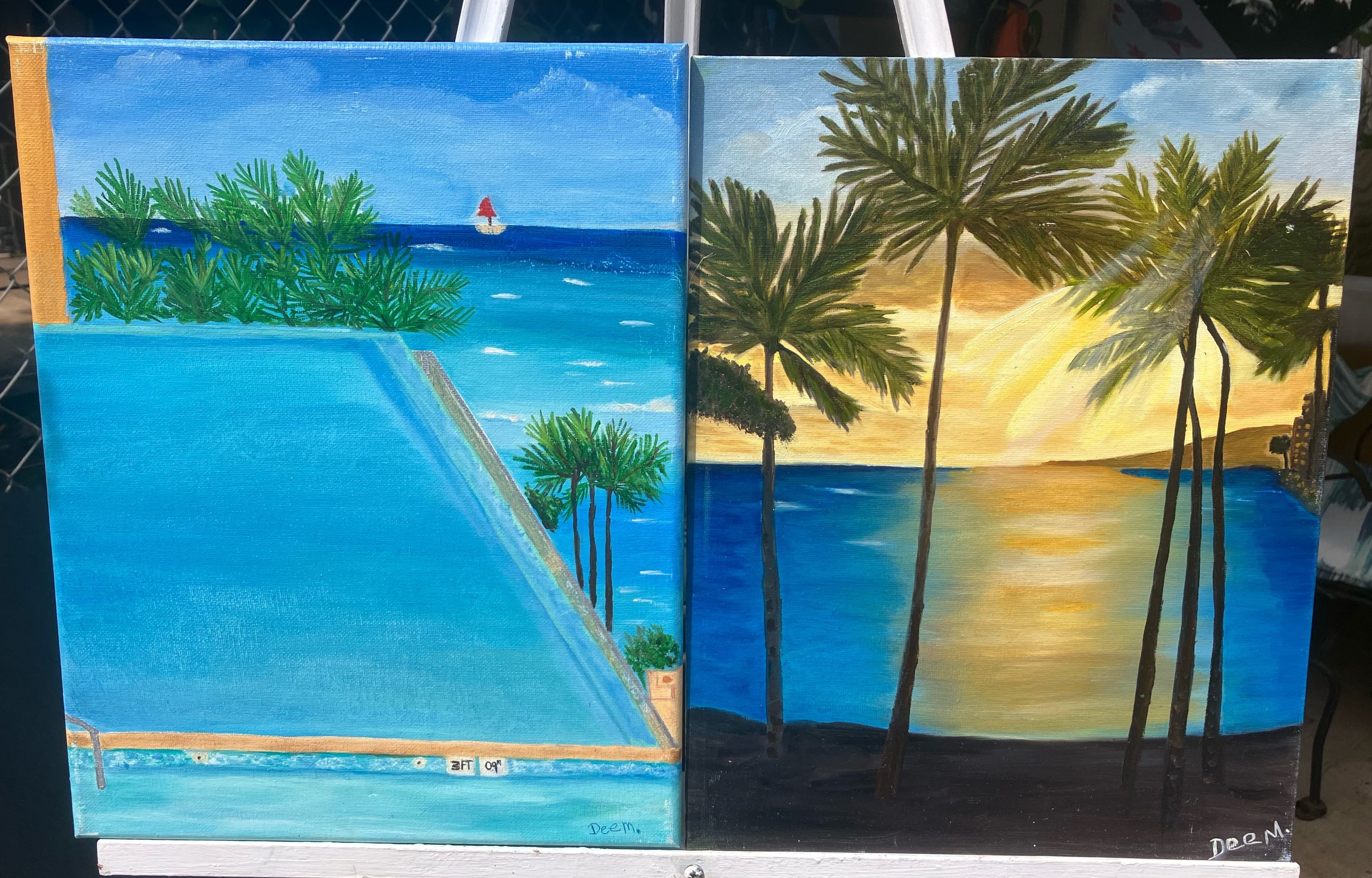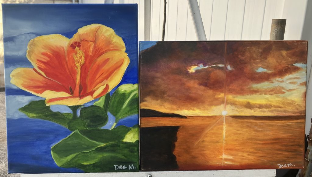 Oil and acrylic paintings, sizes 8×10 – 16×24 canvas.